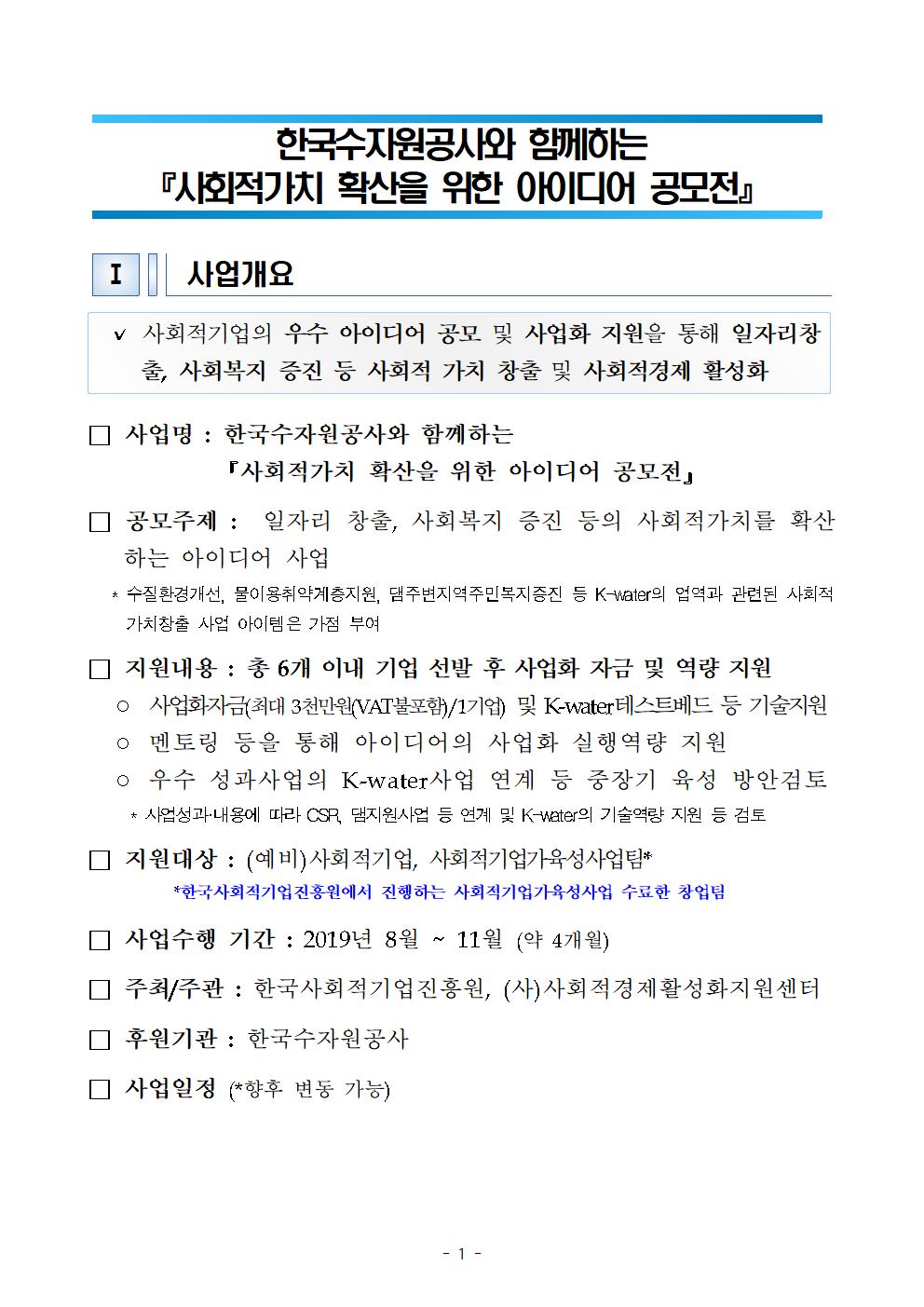 [공고 및 신청서] K-water 사회적가치 확산을 위한 아이디어 공모전.hwp